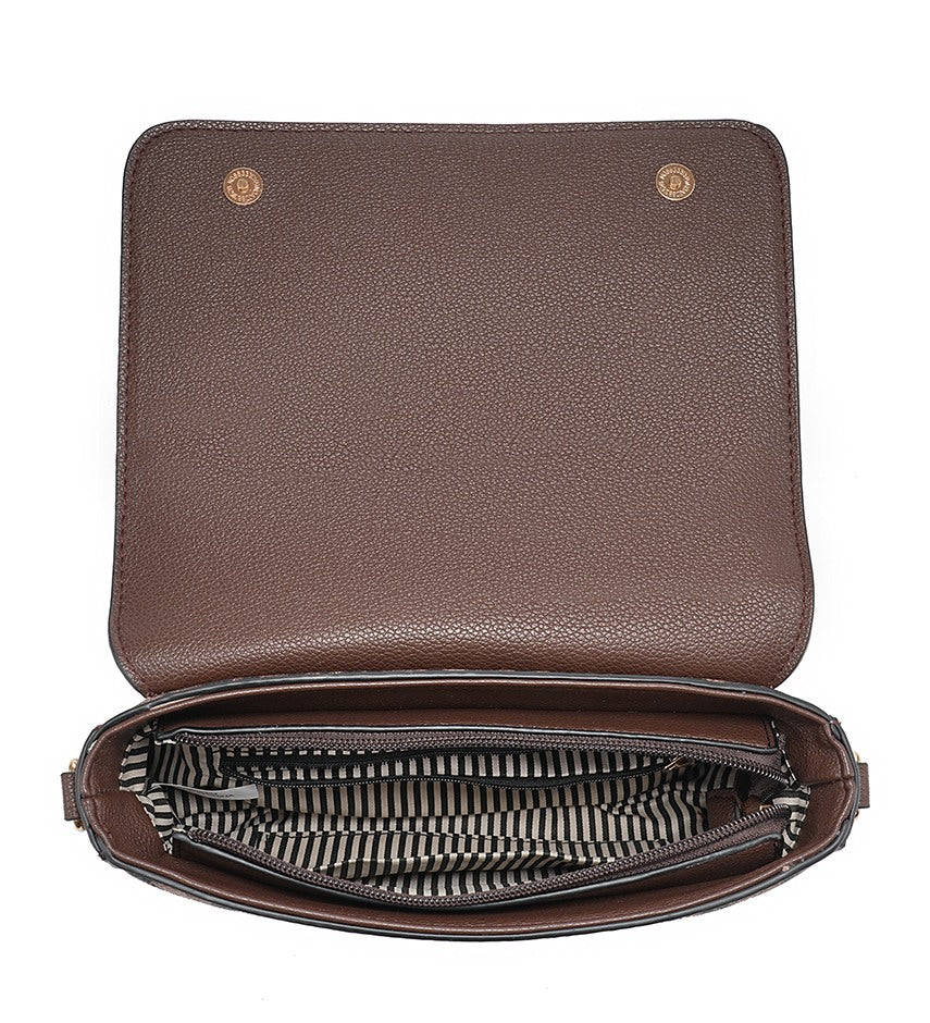 This sophisticated "tote bag" cross body is designed with a detachable strap for versatile wear. It includes a embossed detail, a back pocket, and a secure zip closure, all complemented by a fully lined interior and flap over design. Made from premium PU on the outside and polyester inside, it measures 24cm in length, 13cm in height, and 10cm in width. The bag comes complete with a dust bag, combining elegance with practicality.