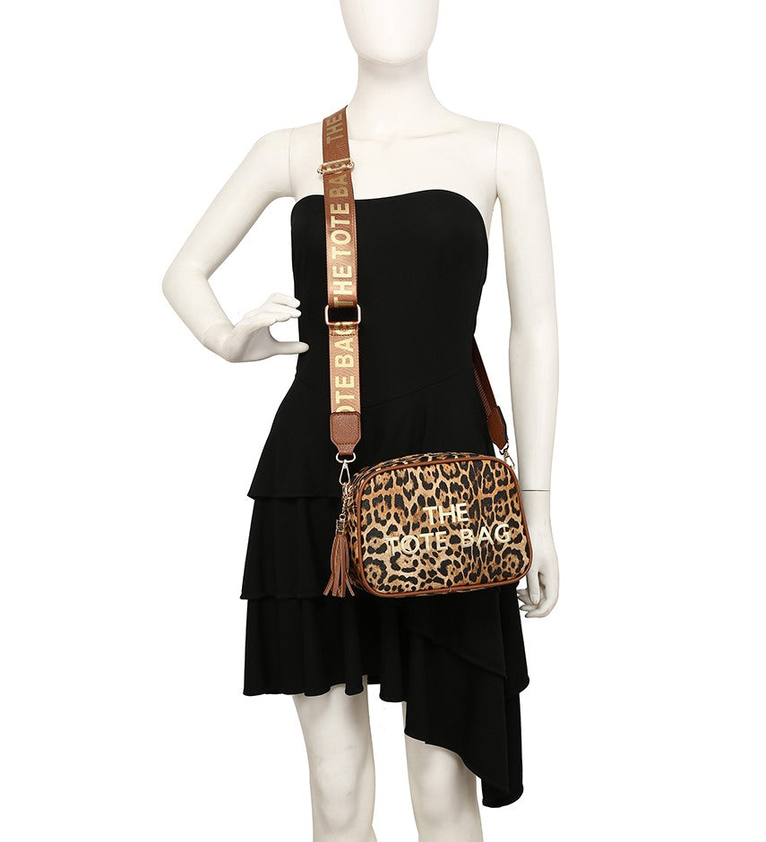 ANIMAL PRINT "THE TOTE BAG" CROSS BODY BLACK