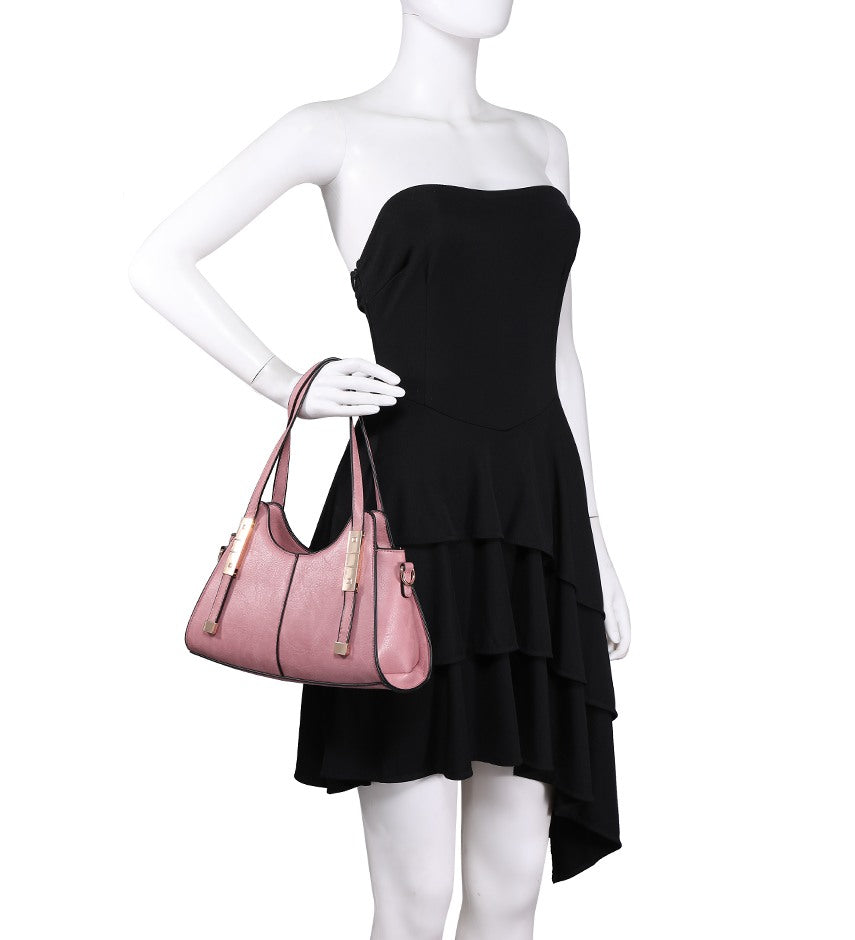 This sophisticated tote bag showcases a stylish colour block design and a fully lined interior for a polished finish. It features a detachable long strap, secure zip closure, and a convenient back zip pocket. Included is a decorative scarf to enhance its elegance. The bag measures 27cm in length, 19cm in height, and 10cm in width, crafted from high-quality PU on the exterior and polyester lining. A dust bag is also provided for protection.