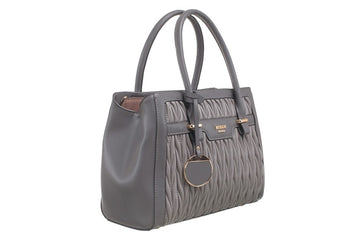 This elegant quilted tote bag is designed with a charming detail and features a fully lined interior. It offers a detachable long strap, zip closure, double handles, and inner compartments for organized storage. Measuring 31cm in length, 23cm in height, and 14cm in width, it is crafted from premium PU material with a polyester lining. The package includes a dust bag for safekeeping.