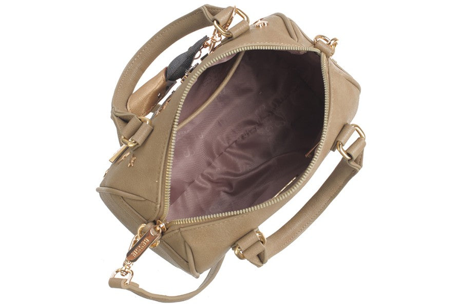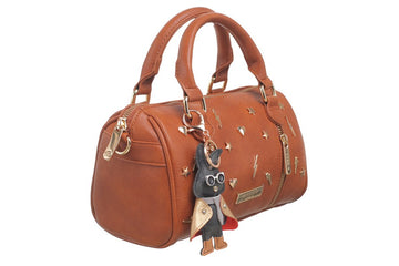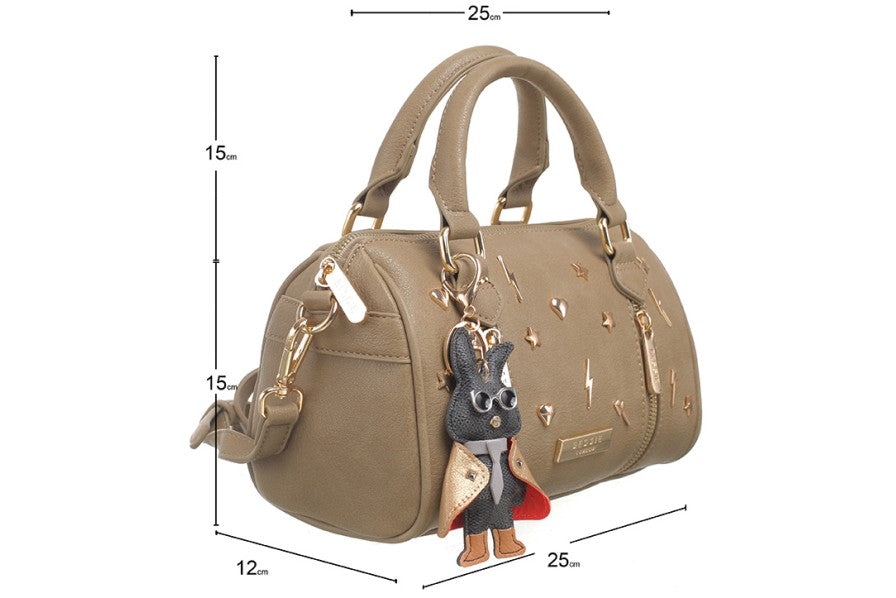 This elegant piece serves as a barrel, crossbody, and tote bag, complete with a charming detail and a fully lined interior. It features a detachable long strap, zip closure, and double handles for versatile carrying. Measuring 25cm in length, 15cm in height, and 12cm in width, it is crafted from premium PU leather on the outside with a polyester lining. The set includes a protective dust bag to maintain its pristine condition.
