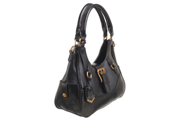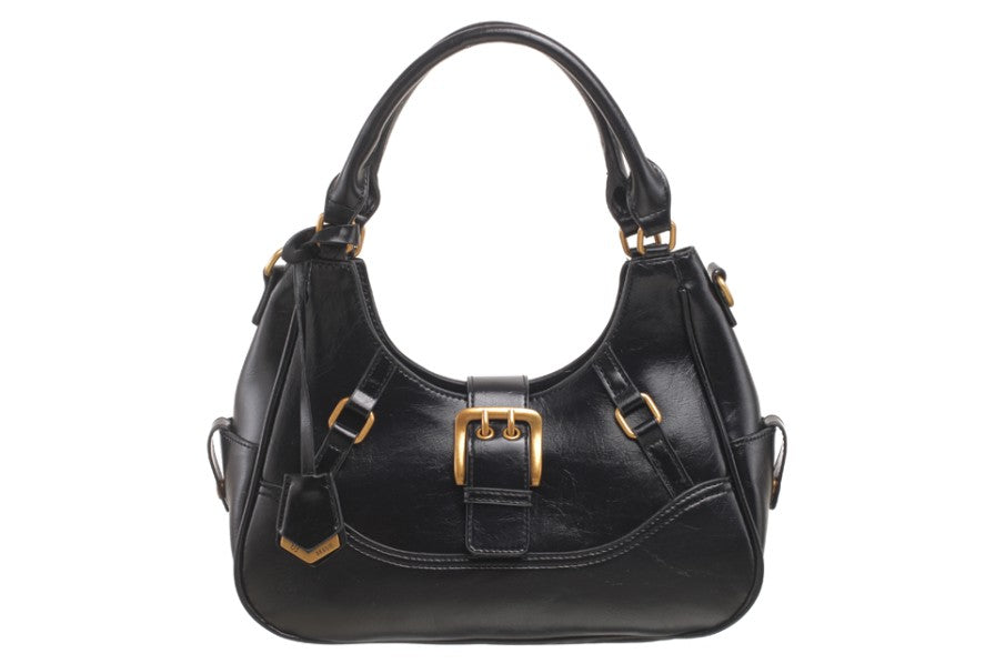 This sophisticated tote bag features a sleek buckle detail, double handles, and a detachable long strap for versatile carrying options. It boasts a fully lined interior with a secure zip closure. Measuring 30cm in length, 24cm in height, and 11cm in width, the bag is crafted from high-quality PU on the outside with a polyester lining. Included is a protective dust bag. Model height: 164cm.