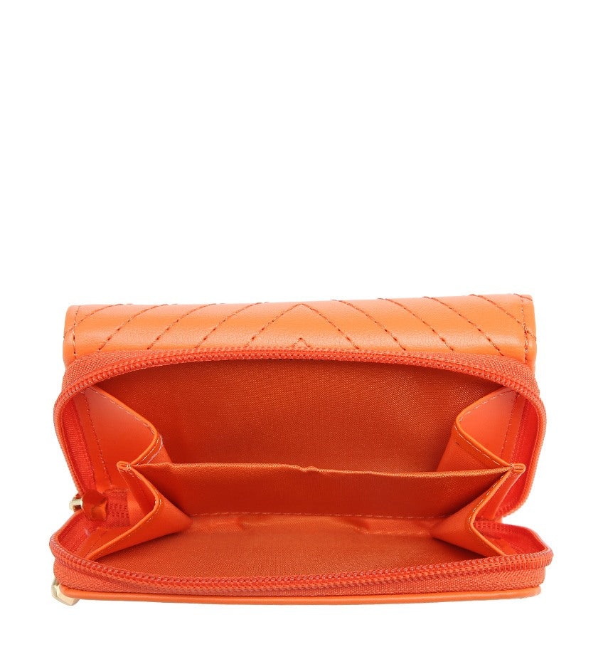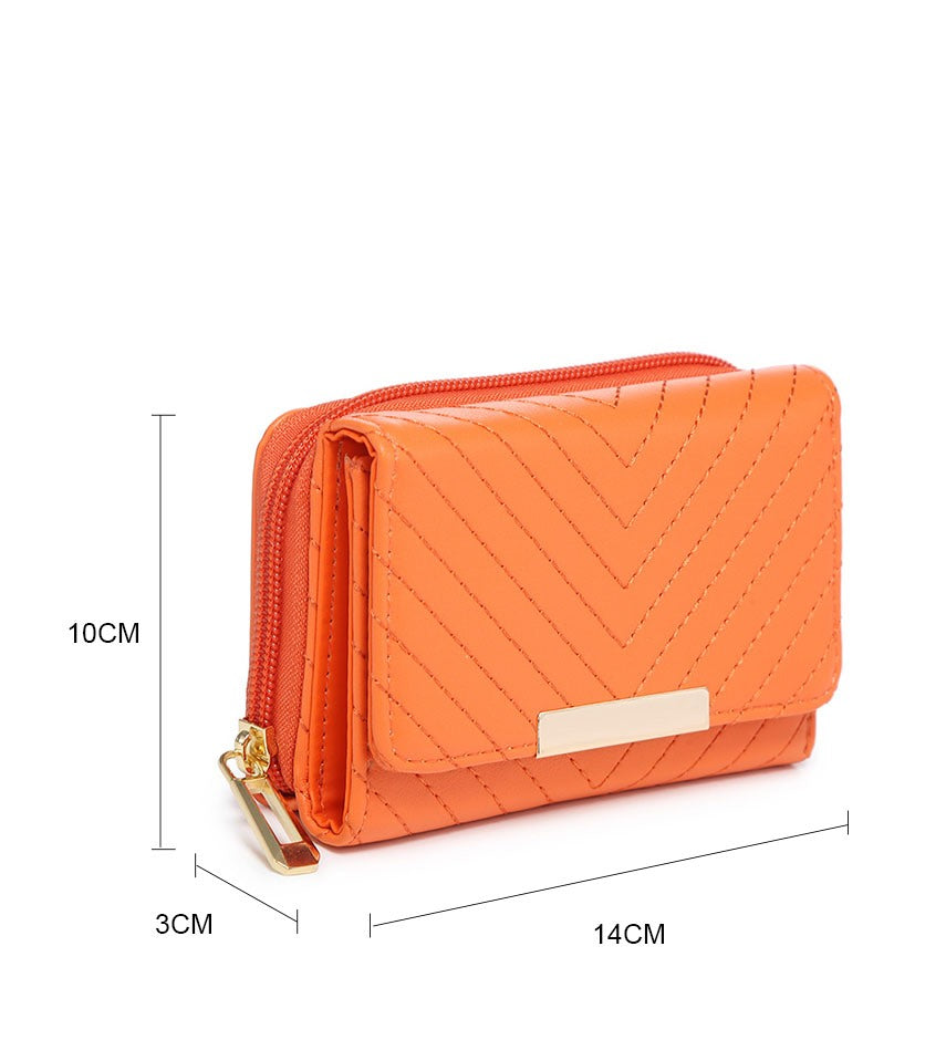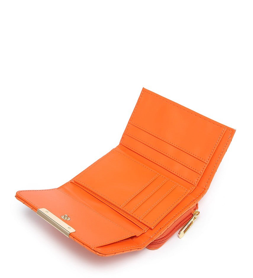 Expertly crafted with high-quality PU on the outer fabric and polyester on the inner fabric, this lady wallet features a grid design and a flap over closure. The interior includes card slots and a zip pocket, and the item comes in a paper box.