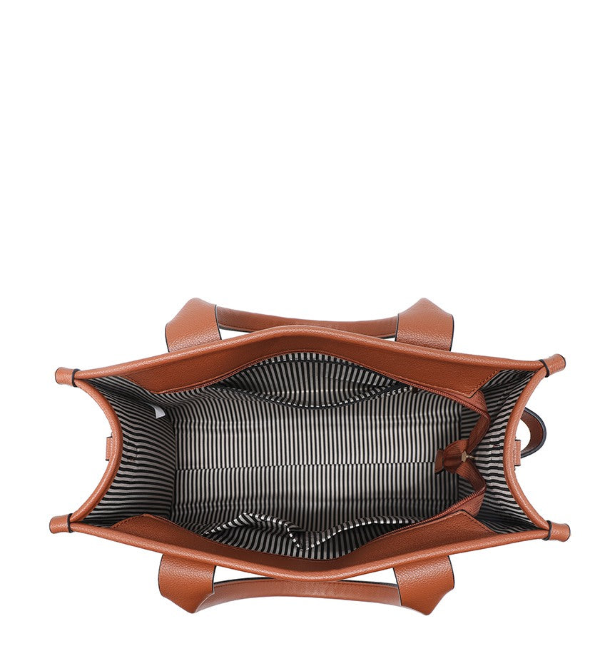 This sophisticated tote bag is designed with double handles and a detachable strap for versatile wear. It includes a secure zip closure, all complemented by a fully lined interior. Made from premium PU on the outside and polyester inside, it measures 36cm in length, 28cm in height, and 12cm in width. The bag comes complete with a dust bag, combining elegance with practicality.
